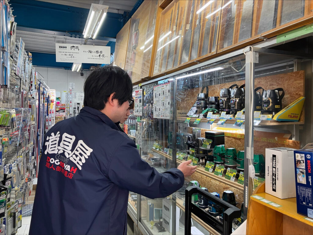 道具屋は大型店舗ではないため、在庫する商品は常に選定され、プロの職人さんが実際に使用する”道具・工具”を在庫しています。工具に詳しくない方でも、用途に合わせて適切な道具を提供します。