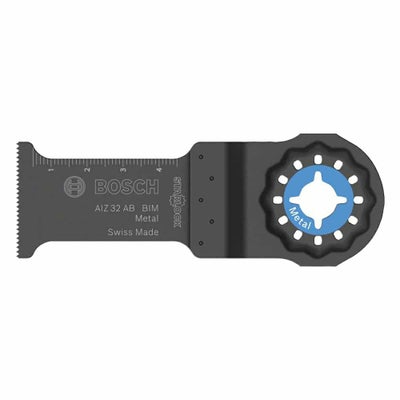 Starlock AIZ 32 AB は、非硬質金属の切断に適した長寿命ブレードです。 HCS (高炭素鋼) ブレードと HSS (高速度鋼) 刃を組み合わせた堅牢な BIM (バイメタル) 構造が、硬質材料や仕上げ材料の加工において優れた耐摩耗性と耐熱性を発揮します。 本体の付け根が細くなっているため噛み込みが生じにくく、迅速に材料を削り取るためブレードの摩耗も最小限に抑えられます。 AIZ 32 AB は強固な取付システムによりぐらつきを低減し、動力を直接伝達することで正確に加工を行えます。これにより、長期間にわたる使用が可能となっています。 本製品は、釘や銅管の面一切断、プラスターボードのプランジ切断に適しています。 通常のマルチツールのほか、Starlock システム、Starlock Plus システム、Starlock Max システムのすべてで使用できます。