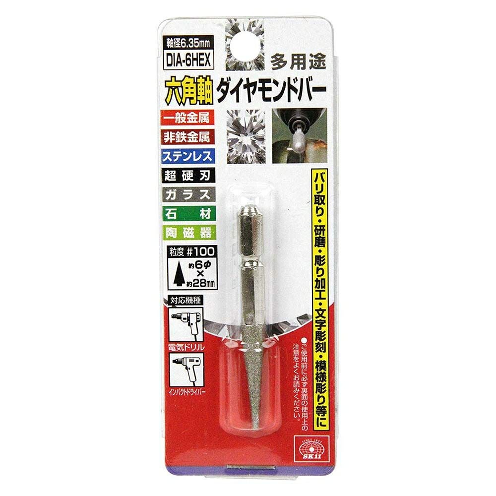 DIA-6HEX 六角軸 ダイヤモンドバー #100 トンガリ型 10Φ×20mm SK11(藤原産業)