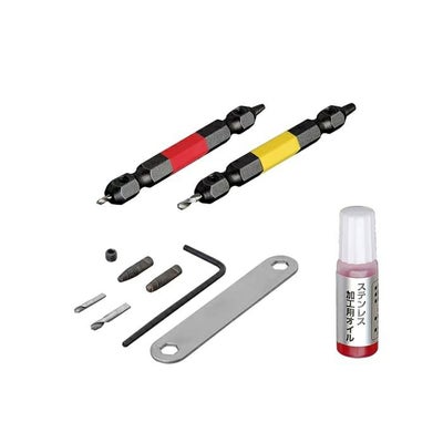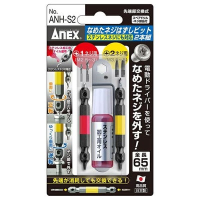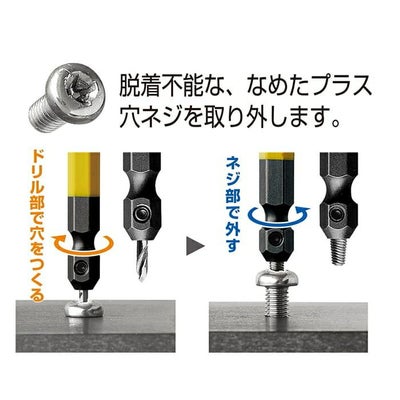 ドリル側でネジに下穴をあけ(正転)、逆ネジ側で抜き取ります(逆転)