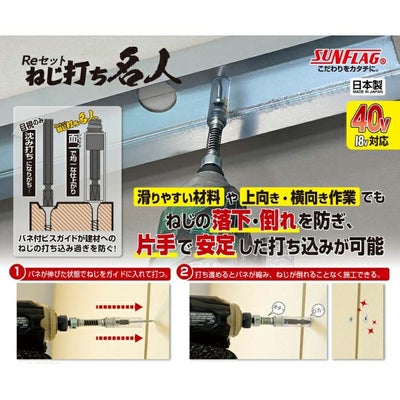 ねじ倒れ、落下を防ぎ片手で安定した打ち込みが可能。