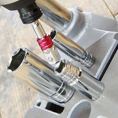 電動ドライバーで様々な先込み角のソケットを装着し、ボルトやナットの締め外しができます。