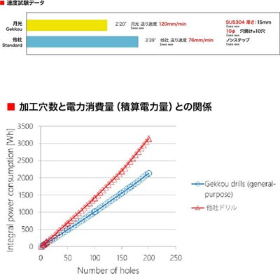 - 切削抵抗が従来のドリルに比べ1/2 電気代の大幅節約が可能です