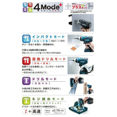 説明コンパクト&ライトボディ+電子クラッチを搭載したインパクトドライバ。インパクト・震動・ドリル・ネジ締めの4モードに加え、テクス用ネジ専用モードを搭載しています。