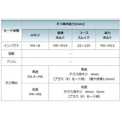 - インパクトモードネジ締め能力
