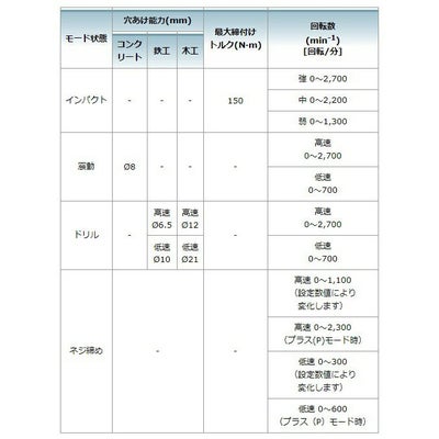 - ドリルモード穴あけ能力