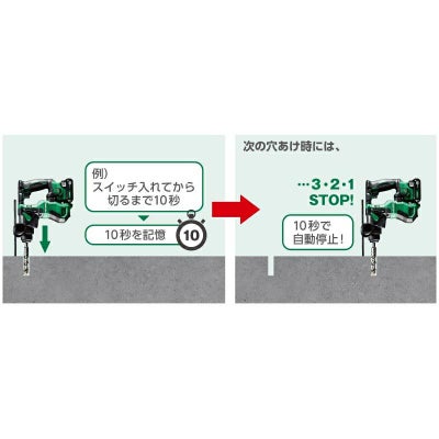 - 穴あけ時間を記憶し、記憶した時間で自動的にモーターを停止させる「オートストップ機能」を搭載しています。