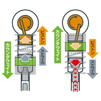 ストライカの動きで逆方向にウェイトを動かし、本体の振動を抑える『アクティブ動吸振器』。