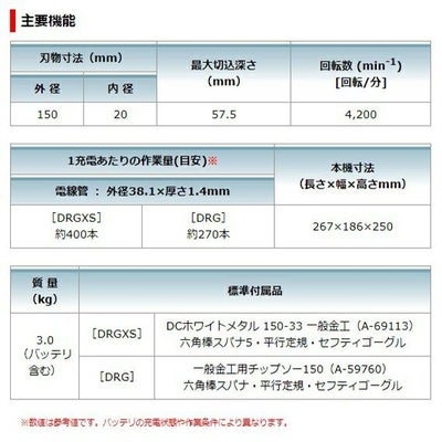 - CS553DRGXS: セット品(18V/6.0Ah)