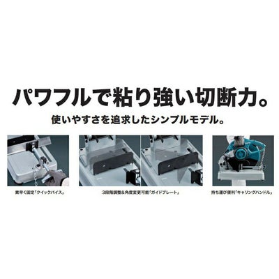 使いやすさを追求した、シンプルモデルの切断機。コードは二重絶縁タイプ。刃物径: 355mm、最大切込深さ: 127mm