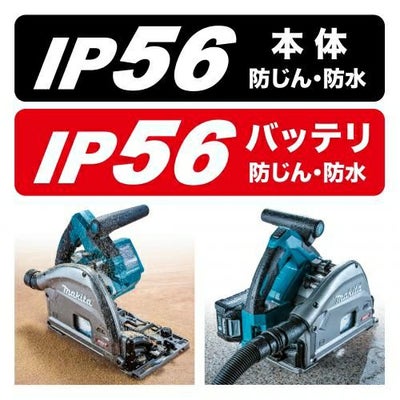 - 粉じんや雨から保護、防じん・防水保護等級IP56に、本機はもちろん、バッテリも対応。
