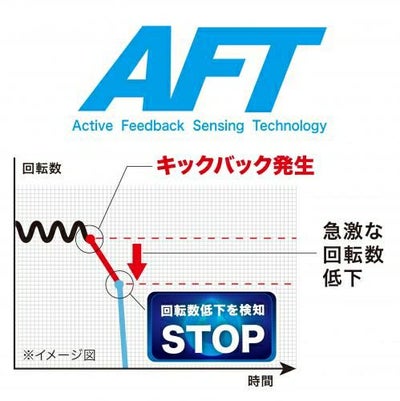 - キックバック発生による急激な回転数低下を検知して停止し、キックバックによる反動低減。
