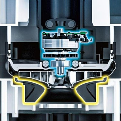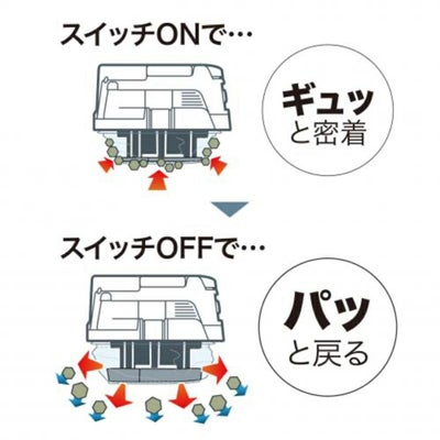ワイヤレスユニットを内蔵し、別売りの電動工具側のワイヤレスユニットを使えば、充電工具のスイッチONで集じん機が起動します。