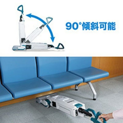 90゚傾斜可能、フラットな状態まで倒せ、ベンチ下等の清掃にも便利。