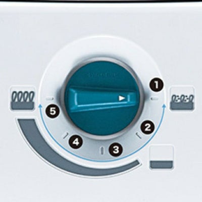 ブラシ高さ5段階調整、カーペットの毛足長さや床等に合わせて①~⑤までの5段階調整可能。①の位置に合わせれば、ブラシが最も下がり、毛の奥のしつこい汚れも快適清掃。