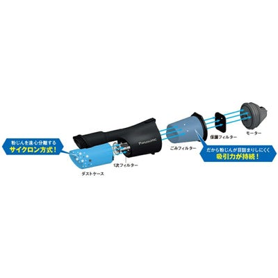 目詰まりしやすい石こうボード粉もサイクロンで連続吸じん可能な、充電サイクロン式クリーナーです(ごみフィルター掃除頻度が当社従来比1/6)。