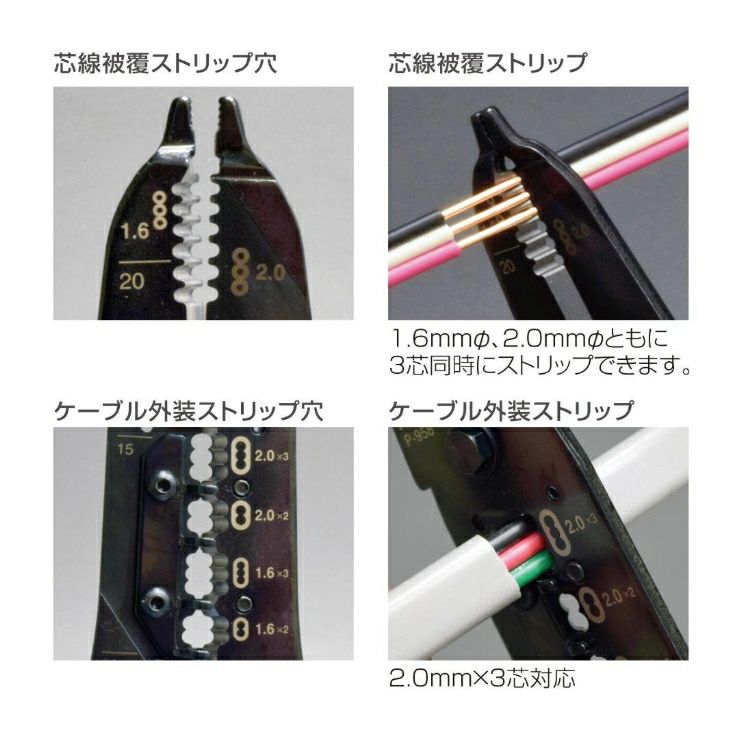 芯線被覆ストリップ適応:VVFケーブル/EM-EEFケーブル(エコ電線)1.6mm×3/2.0mm×3