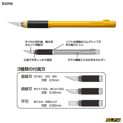滑りにくく、長時間使用しても手が疲れにくいラバーグリップ採用した、本格細工用アートナイフです。