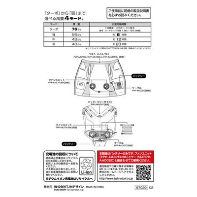 FB-BT7296BK-N 清涼ファン 風雅パッドバッテリーのパッケージの裏面の画像