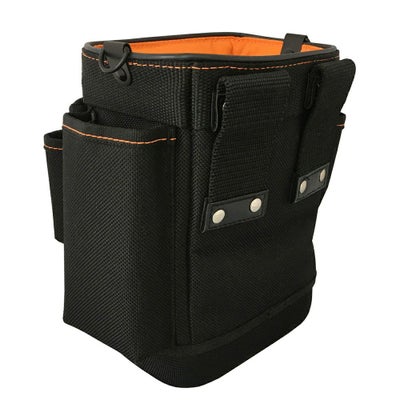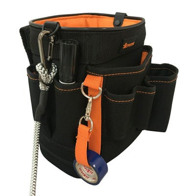 前面のテスター入れポケット、テープフッカーなど、電気工事向けに特化した腰袋です。