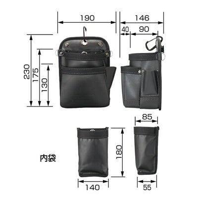 - 幅広い職人さんに適したスタンダード形状の腰袋