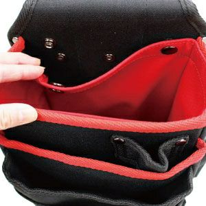 腰袋に隙間なく入るよう、ポーチの口部分に、樹脂板を入れたマーベルの腰袋です。