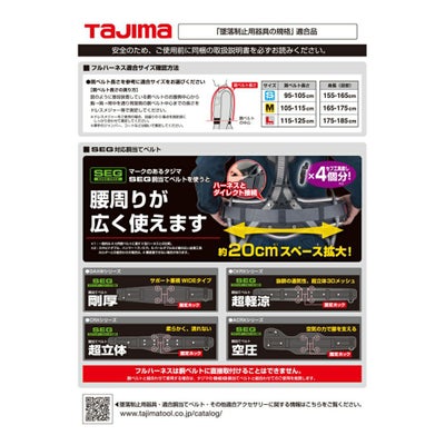 フルハーネス型の「墜落制止用器具の規格」適合品です。