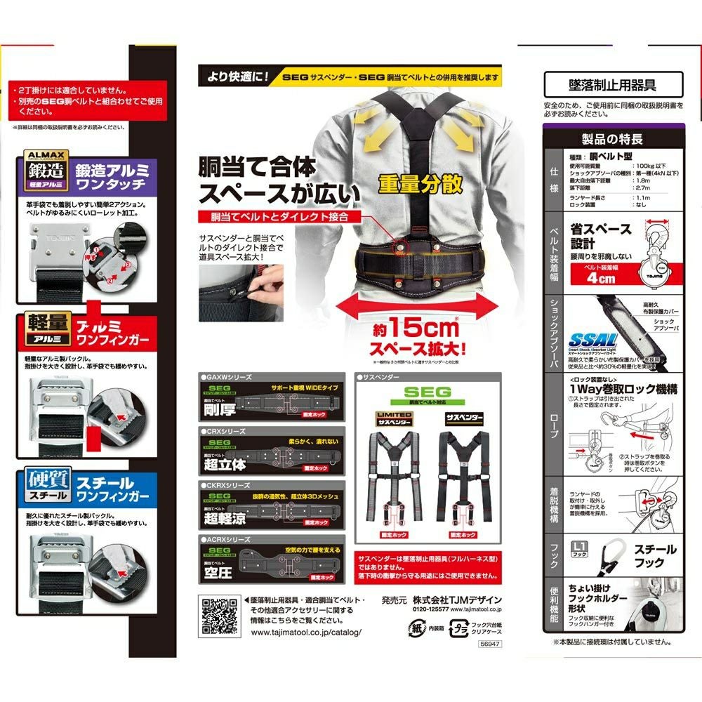SEGREST301 セグレスト 301 胴ベルト型ランヤードセット 新規格対応 TAJIMA(タジマ)