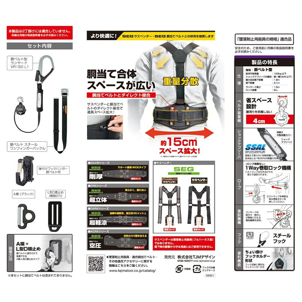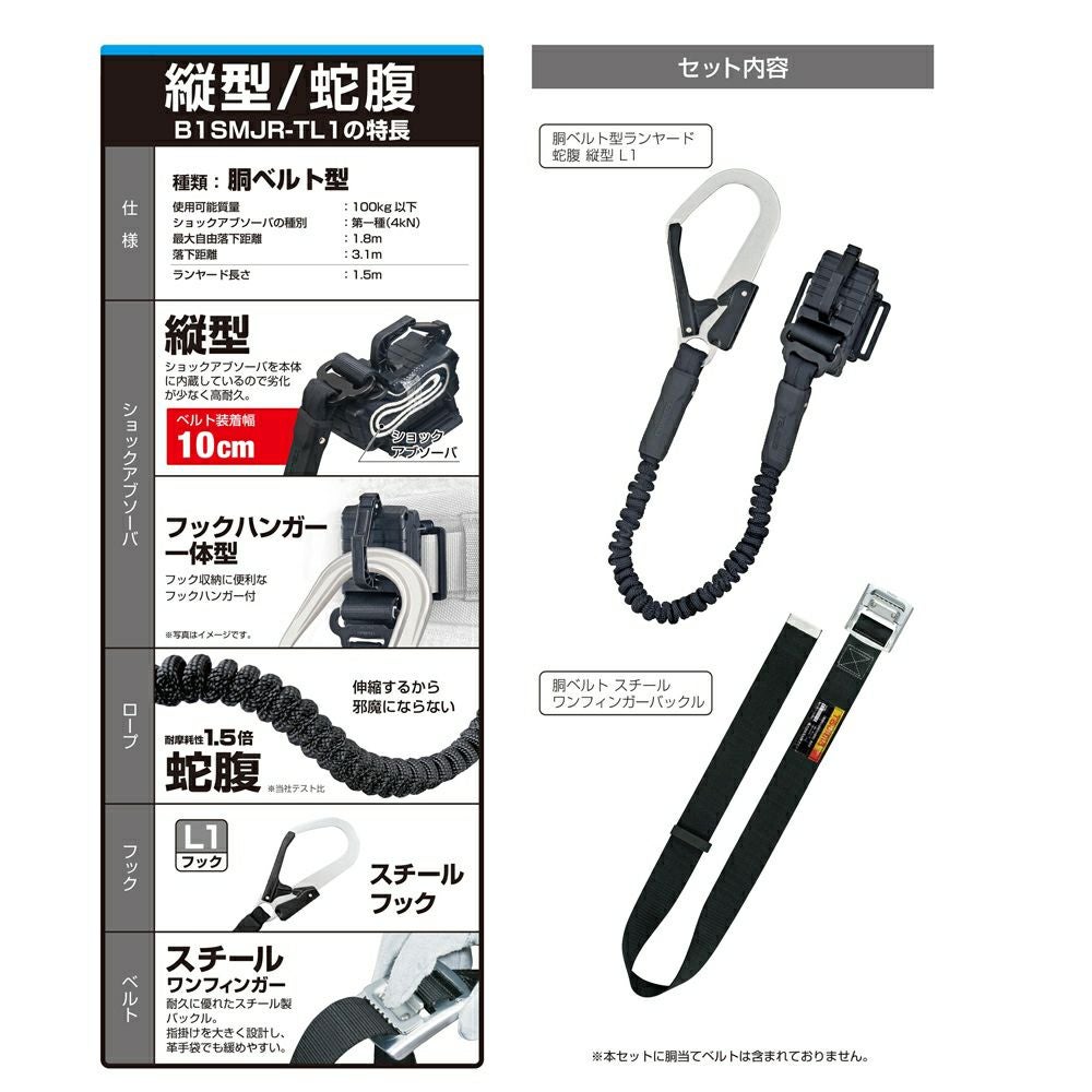 B1ER150-TL1 胴ベルト用ランヤード 巻取 縦型 新規格対応 TAJIMA(タジマ)
