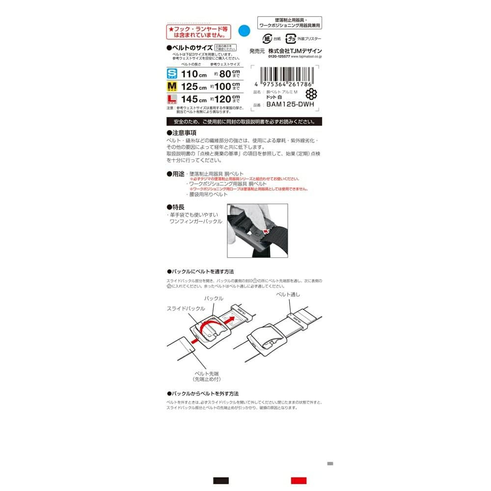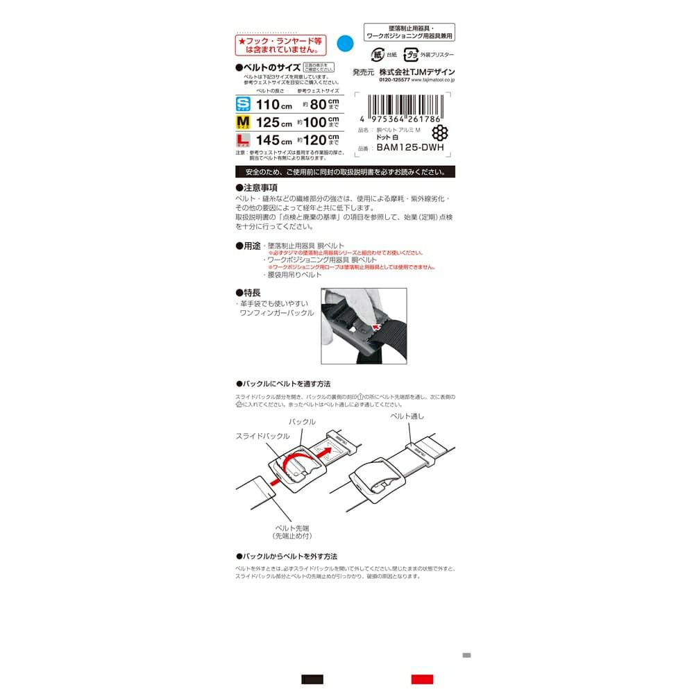 BAM125-DWH 胴ベルト アルミワンフィンガードット白 M 新規格対応 タジマ