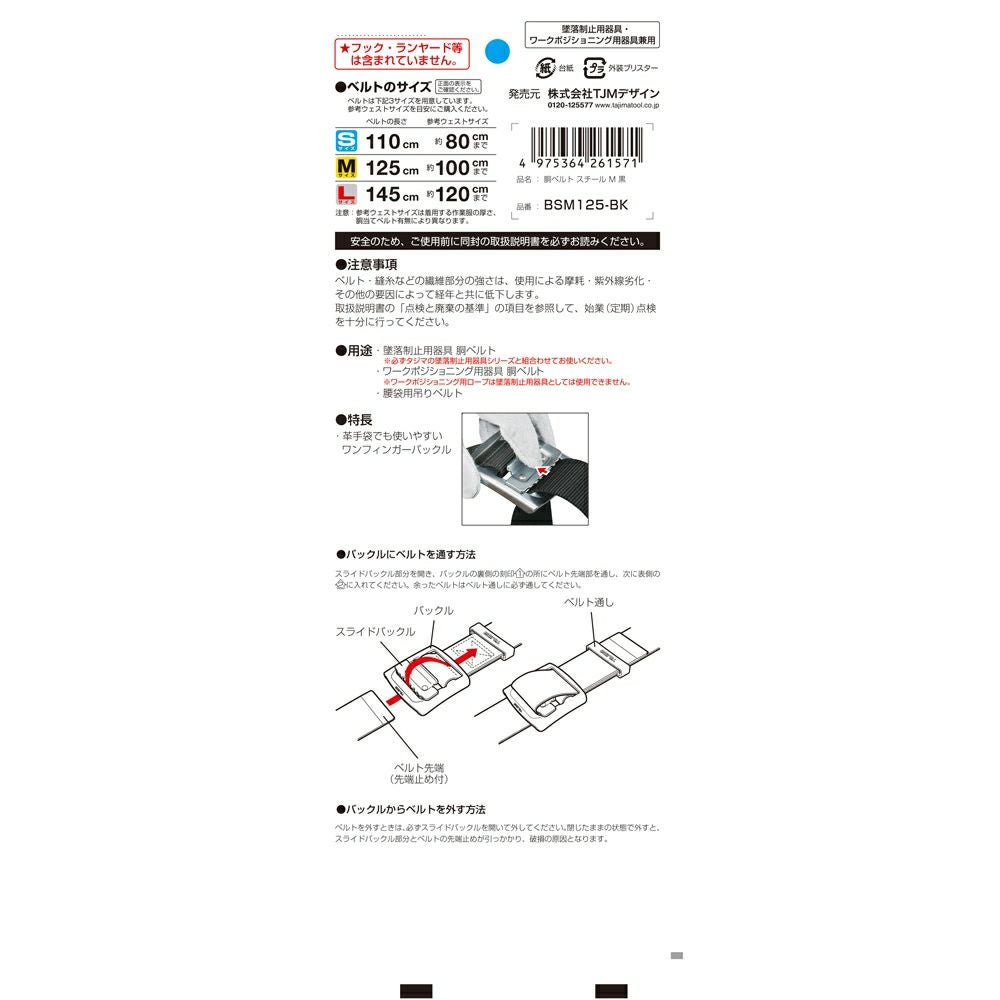 BSM125-BK 胴ベルト スチールワンフィンガー 黒 M 新規格対応 タジマ