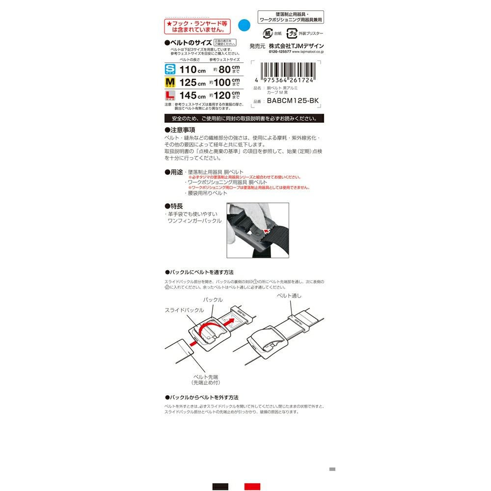 BABCM125-BK 胴ベルト アルミワンフィンガー カーブ 黒 M 新規格対応 タジマ