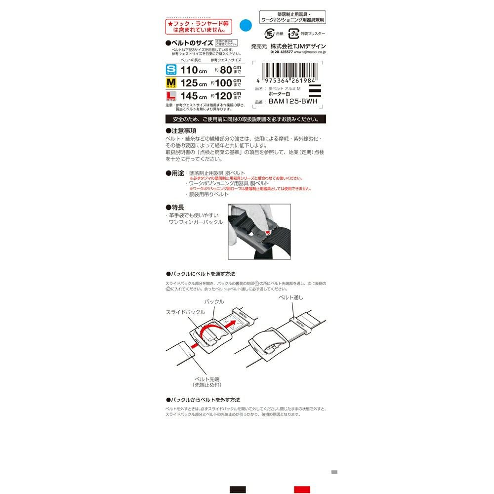 BAS110-BWH 胴ベルト アルミワンフィンガー ボーダー 白 S 新規格対応 タジマ