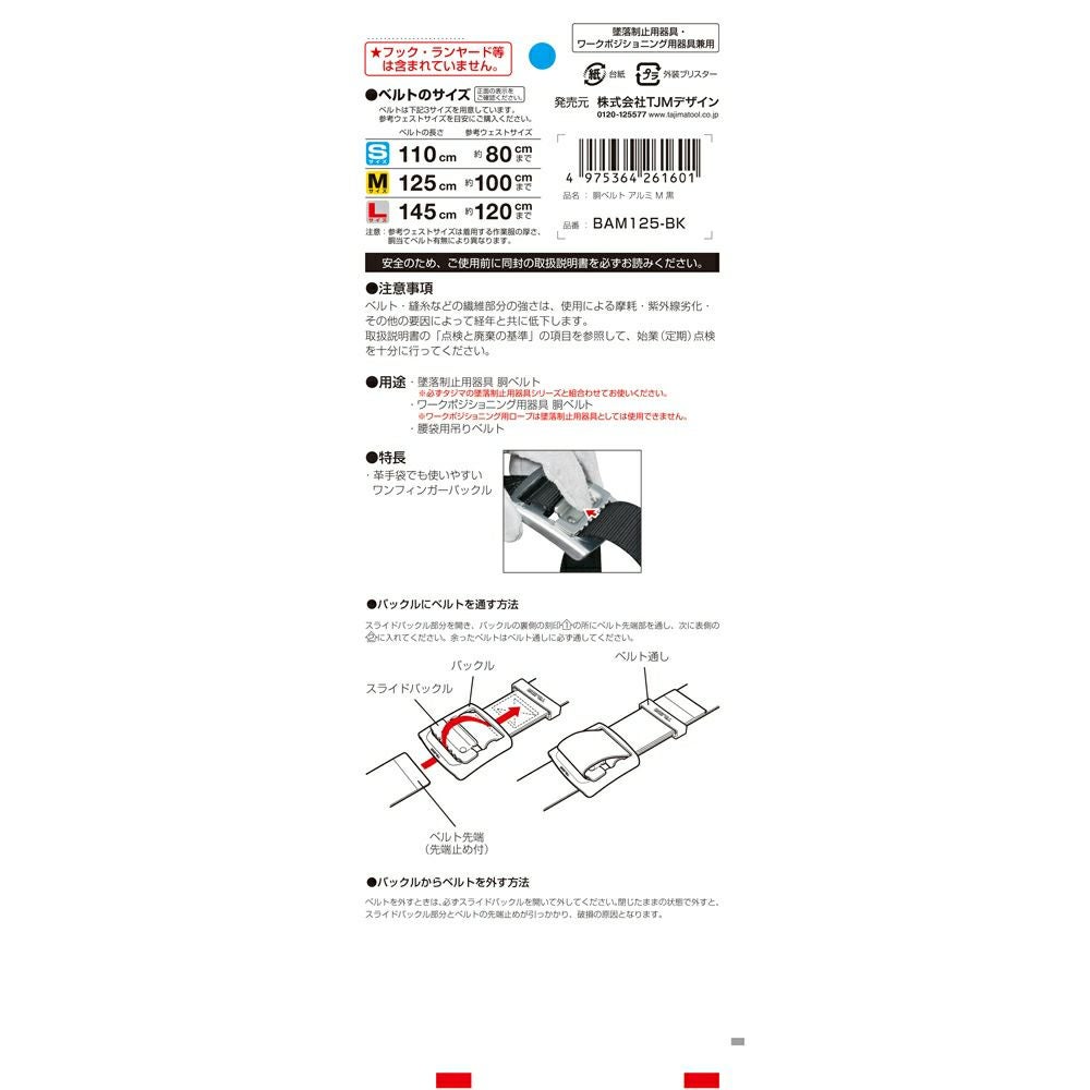 BAM125-BK 胴ベルト アルミワンフィンガー 黒 M 新規格対応 タジマ