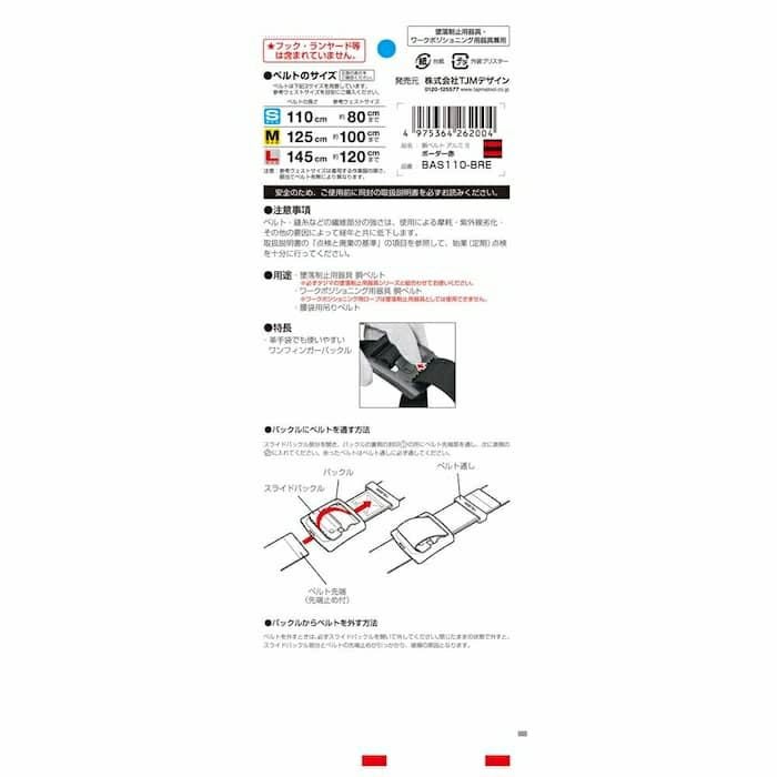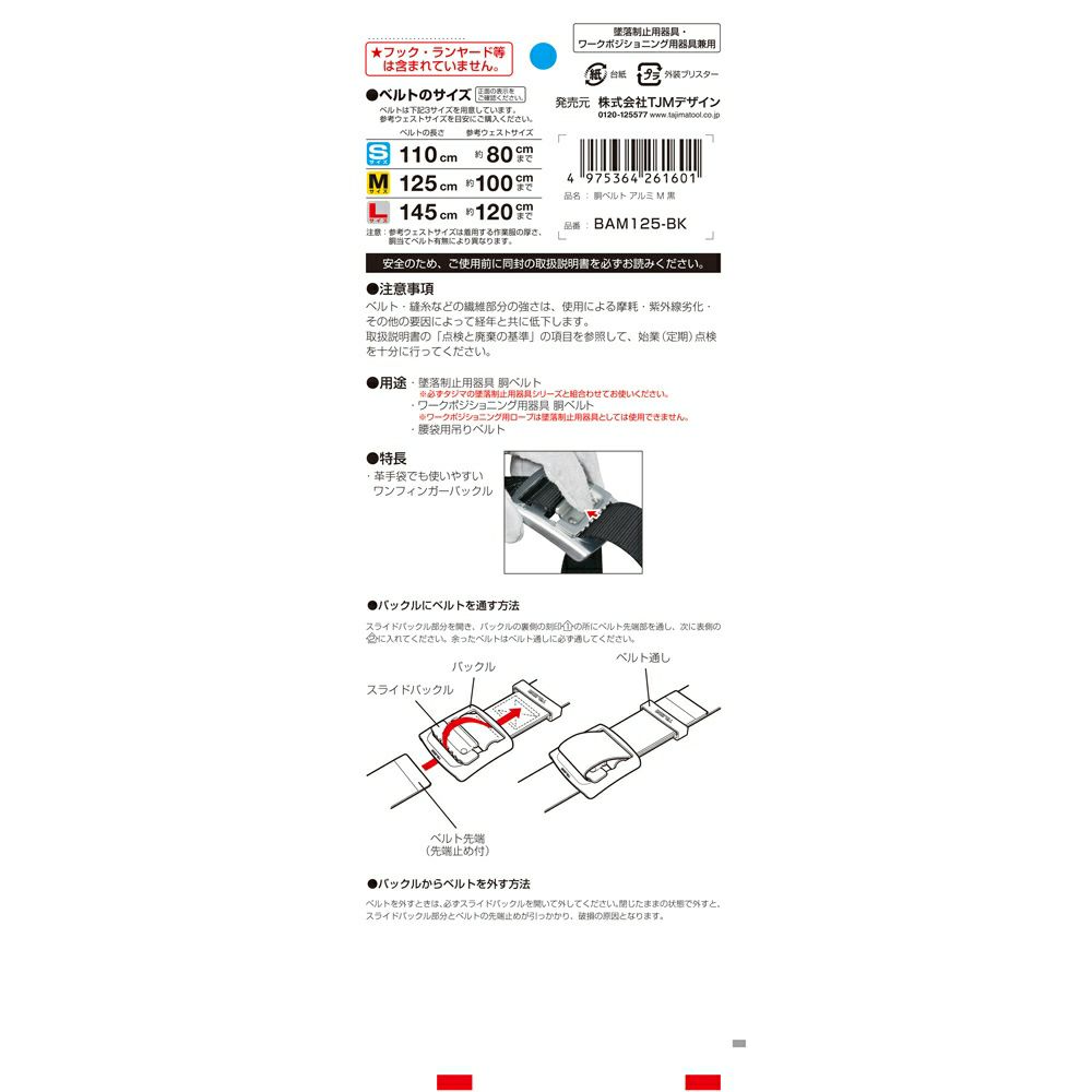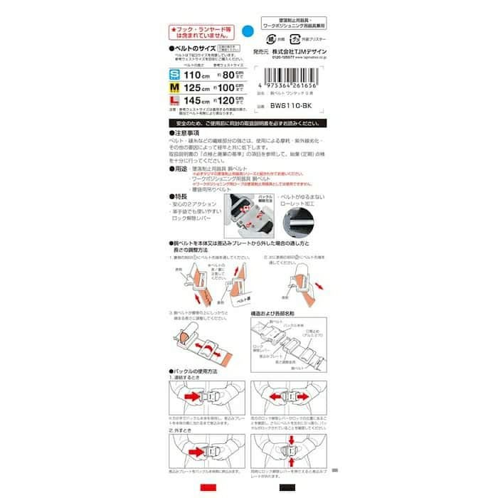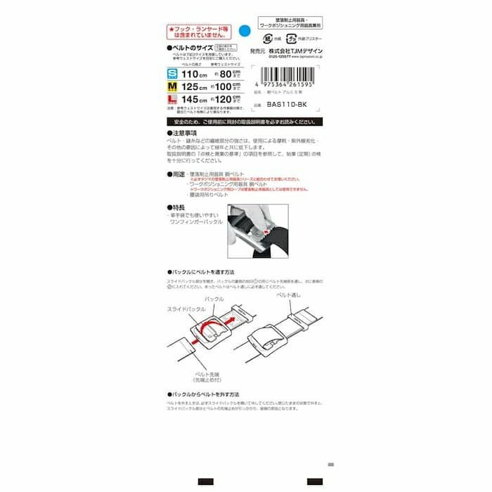 BWS110-BK 胴ベルト アルミワンタッチ 黒 S 新規格対応 タジマ