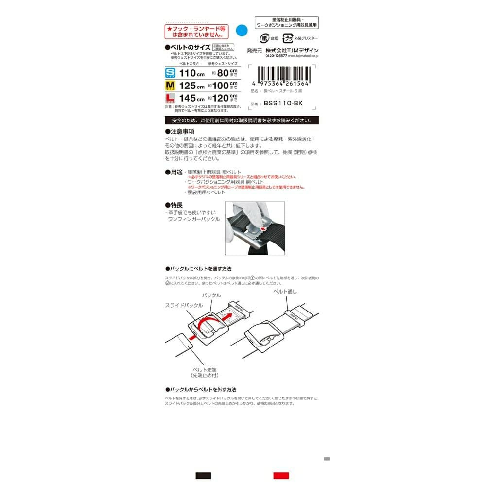 BSS110-BK 胴ベルト スチールワンフィンガー 黒 S 新規格対応 タジマ