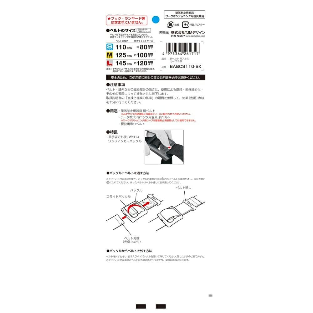 BABCS110-BK 胴ベルト アルミワンフィンガー カーブ 黒 S 新規格対応 タジマ