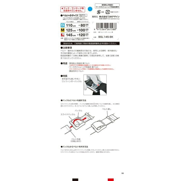 BSL145-BK 胴ベルト スチールワンフィンガー 黒 L 新規格対応 TAJIMA(タジマ)