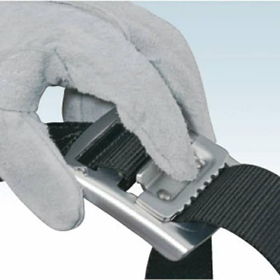 革手袋でも操作が簡単な軽量アルミフィンガーバックル。