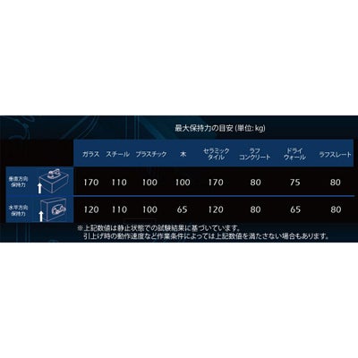 最大170kgの保持力がありほぼあらゆる面を吸着可能です。