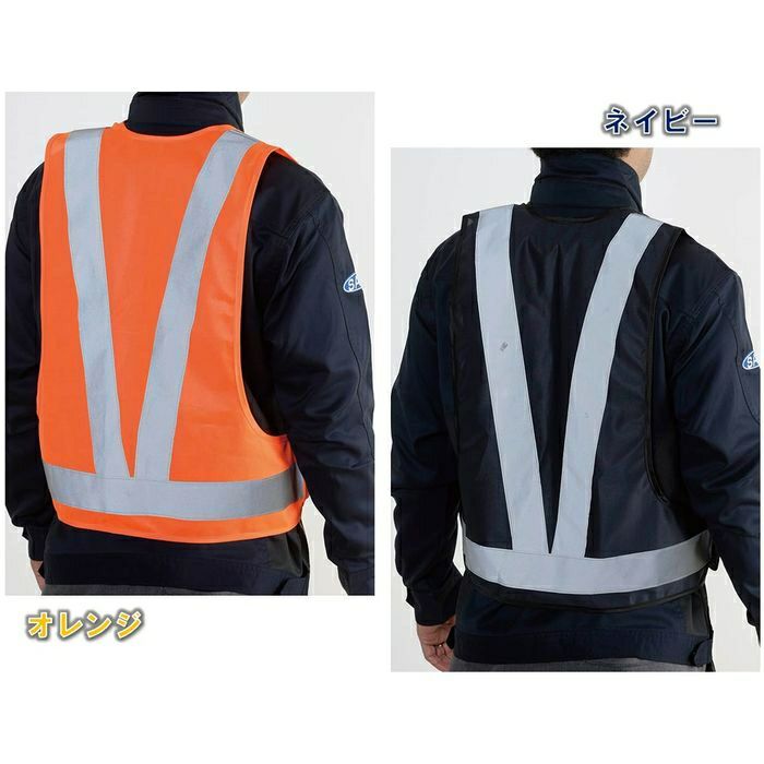 作業着に合わせやすい落ち着いたネイビーと、昼間でも視認しやすい明るいオレンジの2色展開。