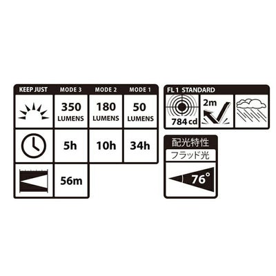 | モード2 180lm(500lx):10h |