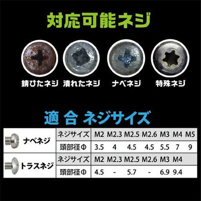 - 適応ネジサイズ: トラスネジ、ナベネジΦ3mm-Φ9.5mm