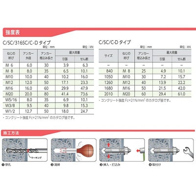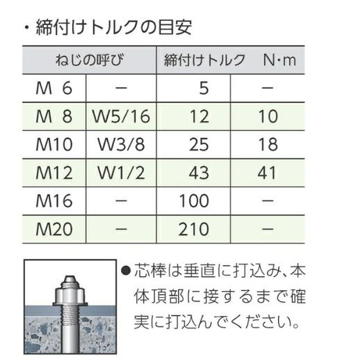 コンクリート孔にアンカーをセットして、芯棒を打込むだけの簡単施工の大工用部材です。建設工事、土木工事、電気工事、機械設備工事などに。