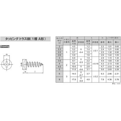トラス頭のタッピンネジ1種です。表面には銀色のメッキ処理がされています。