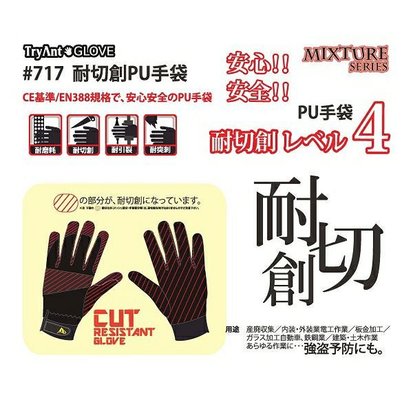 717 耐切創PU手袋 ブラック キタヤマ