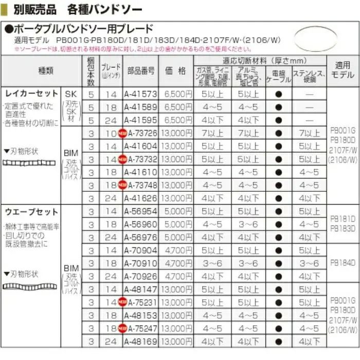 ポータブルバンドソーPB181・PB183用替え刃