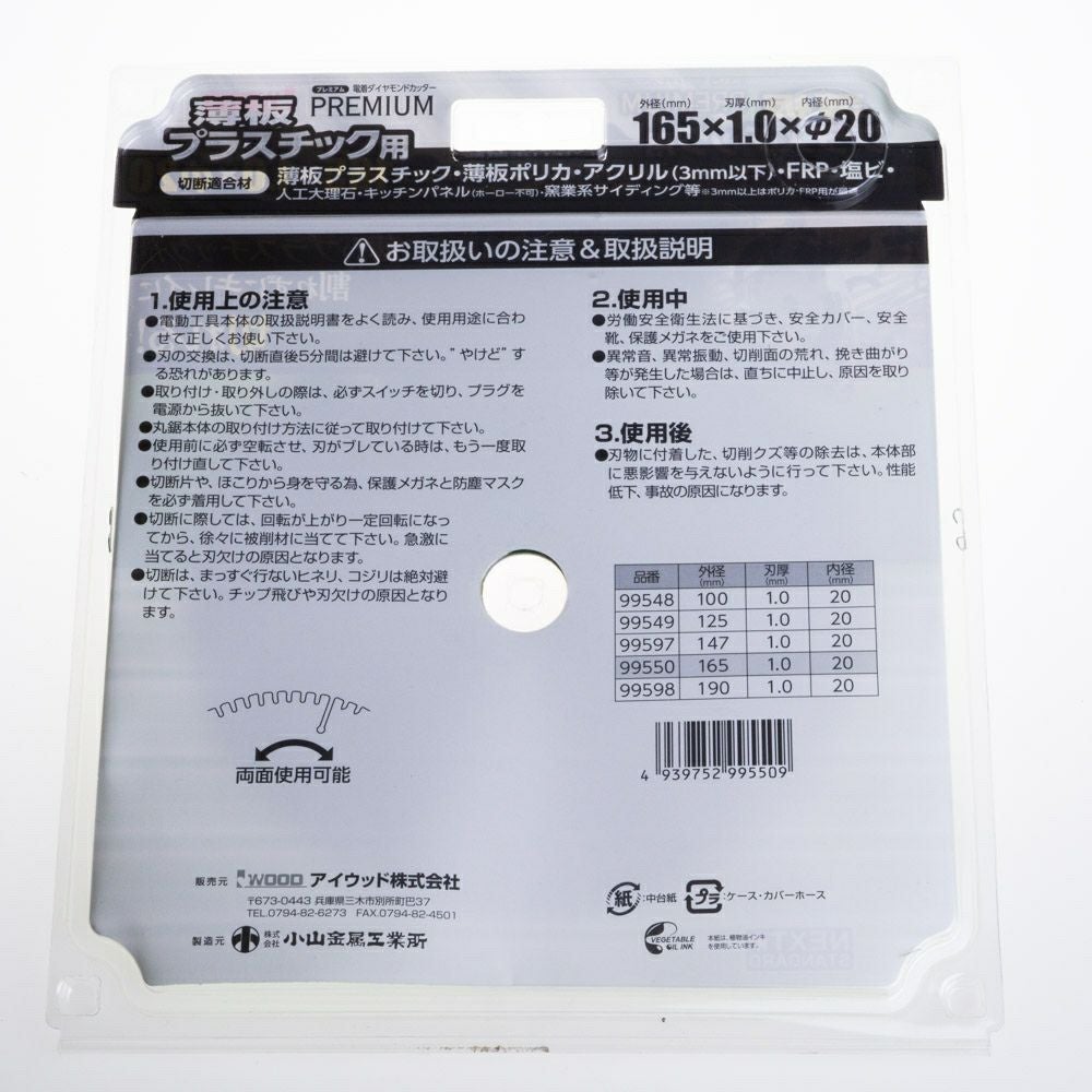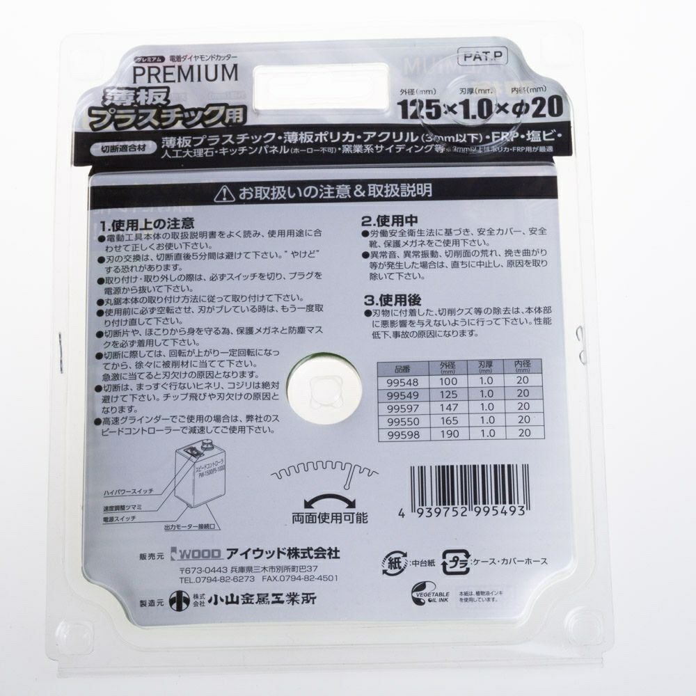 薄板プラスチック用 電着ダイヤモンドカッター アイウッド(小山金属工業所) ☆